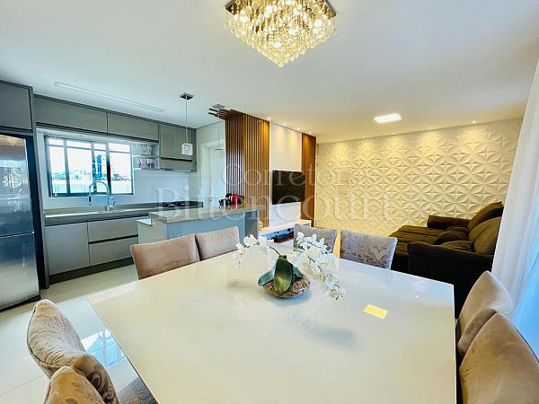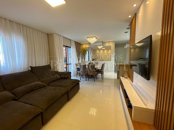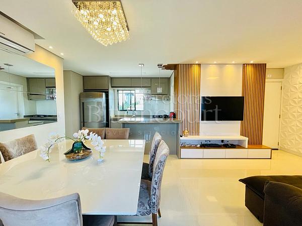 São 92 m² de área privativa, suíte mais 2 dormitórios, 3 sacadas, ambientes integrados e móveis planejados de muito bom gosto.
