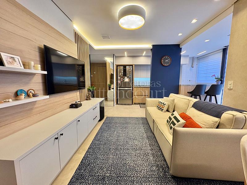 Assim, a área social do apartamento ficou com excelente configuração, ampliando os ambientes e deixando muito agradável para receber amigos e familiares.