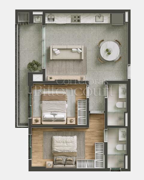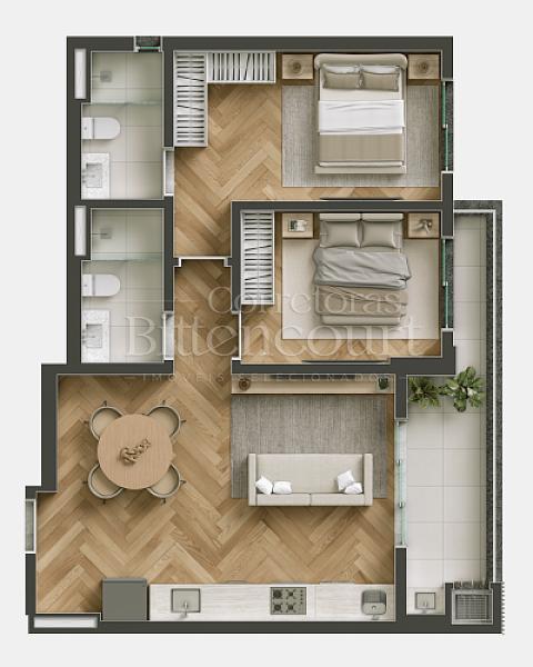 O residencial conta com diversas opções de plantas com 1 suítes + 1 quarto que vão de  65m² a 69m², para atender diferentes perfis de clientes.