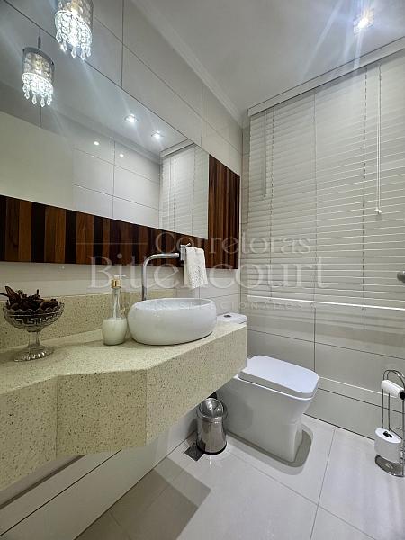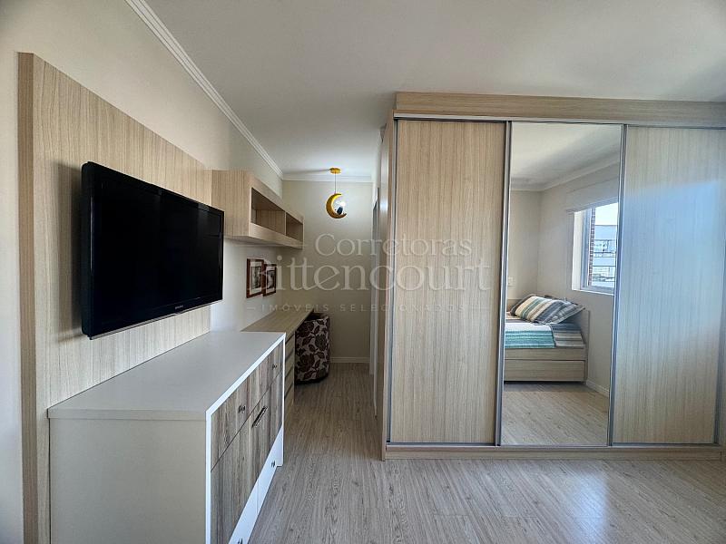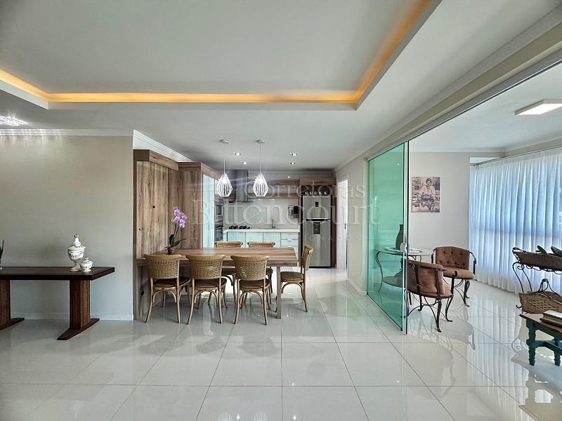 Próximo ao Angeloni, o apartamento tem 149m² privativo com uma ótima distribuição. Está todo mobiliado e possui 3 suítes e 3 vagas individuais de garagem.