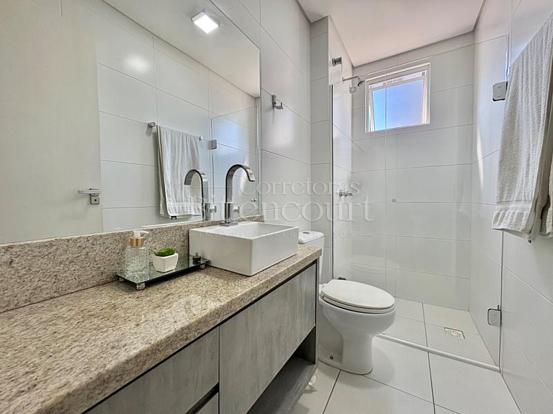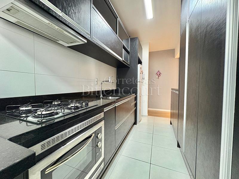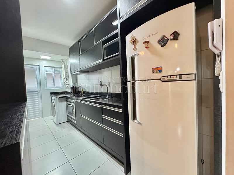 Sacada com acesso para a lavanderia, aquecimento a gás, janela da suíte ampla e com sol da manhã, e ainda 01 vaga de garagem.