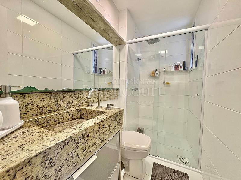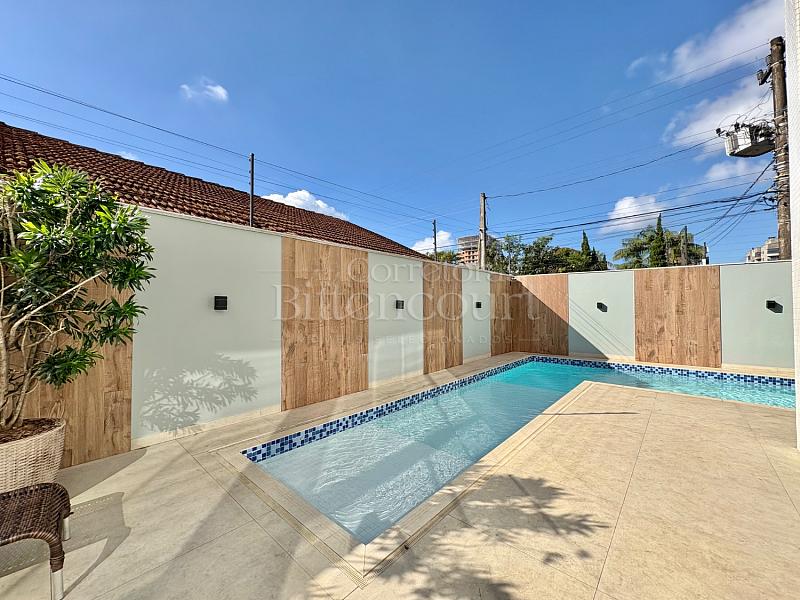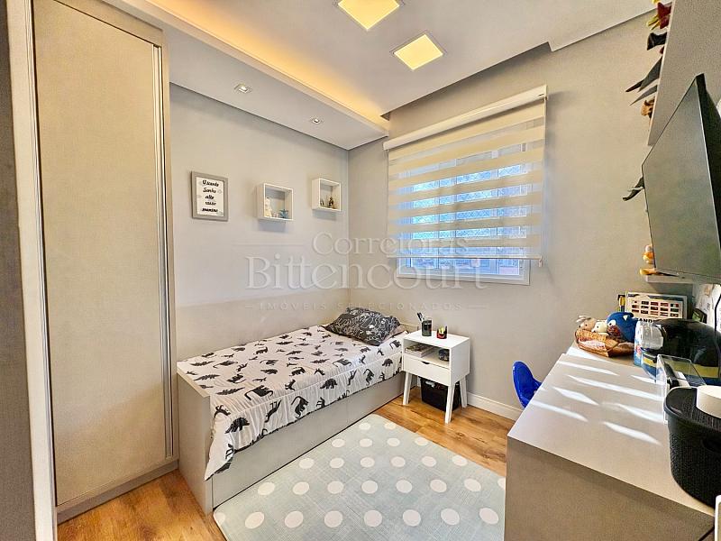 Sua planta originalmente com 3 quartos foi modificada e atualmente está com uma suíte e 01 dormitório, podendo ser facilmente revertida para 3 dormitórios. Ampla área social com sala de estar e jantar, churrasqueira integrada, cozinha e área de serviço com estendal.