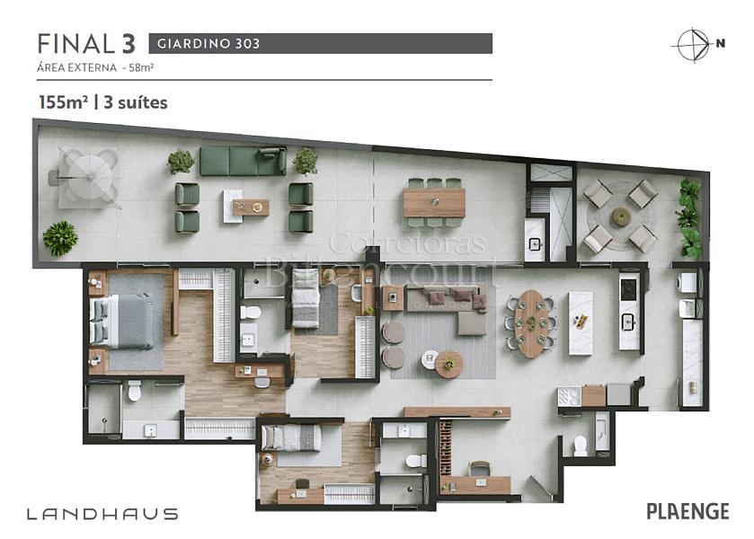 O Landhaus Joinville é um lançamento exclusivo que oferece sofisticação e conforto em uma localização privilegiada, com acabamento de alto padrão nas áreas comuns e privativas.