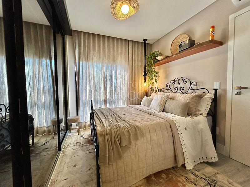 Composto por 01 suíte + 01 dormitório, ele tem como diferenciais, além da marcenaria refinada, automação com comando de voz por Alexa, persianas e cortinas automatizadas, revestimentos de primeira linha, suíte com projetor para modo cinema, iluminação em led, cubas e metais linha especial, entre outros detalhes que foram pensados para conforto e charme do apartamento.