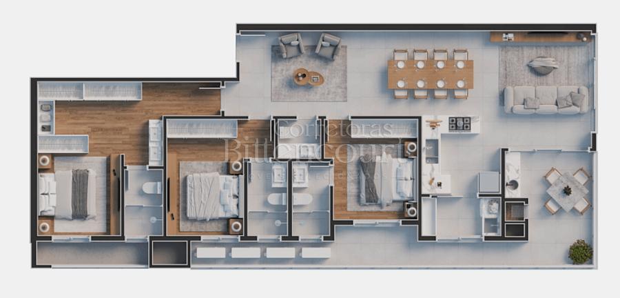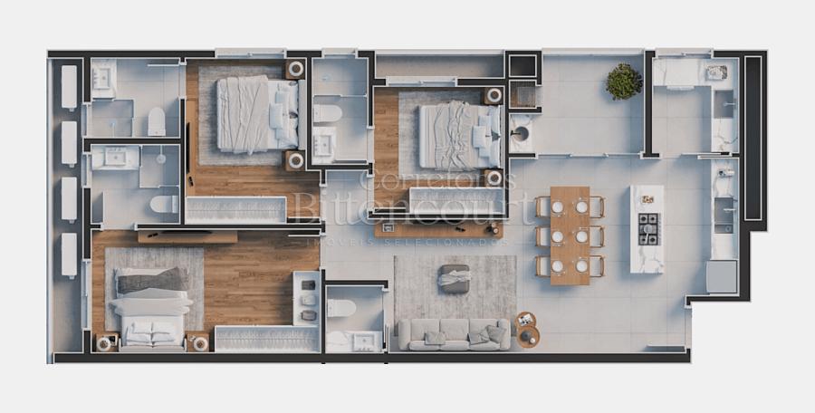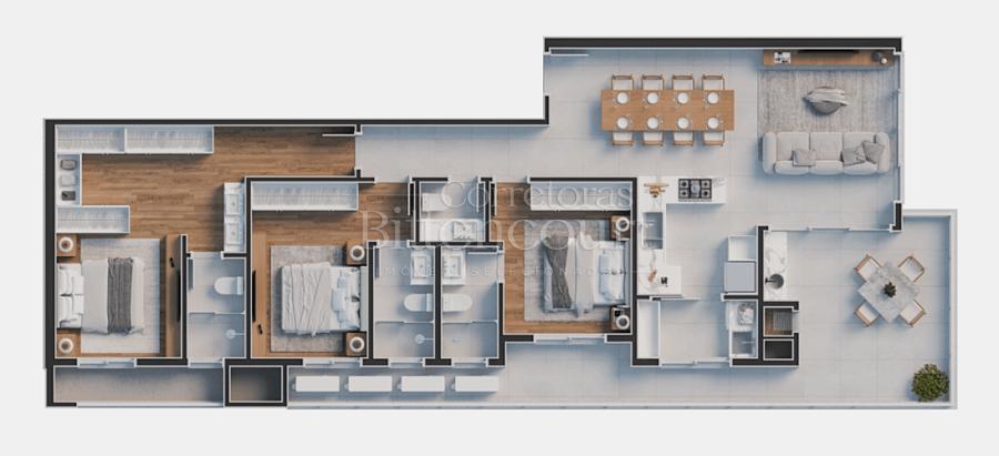 O residencial oferece apartamentos com 3 suítes com opções que podem variar de 101m² a 140m² além de 2 vagas de garagem, podendo optar por apartamentos duplex de mesma configuração.