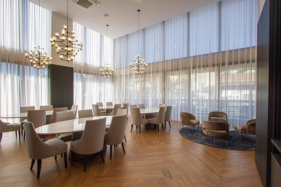 Os acabamentos diferenciados merecem destaque: Esquadrias linha premium, persianas automatizadas, piso de madeira nobre, porcelanato, acabamento em gesso e fechadura biométrica.