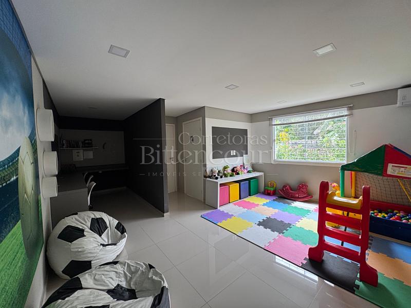O prédio conta com salão de festas, brinquedoteca, piscina e academia.