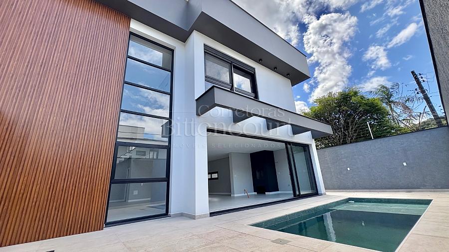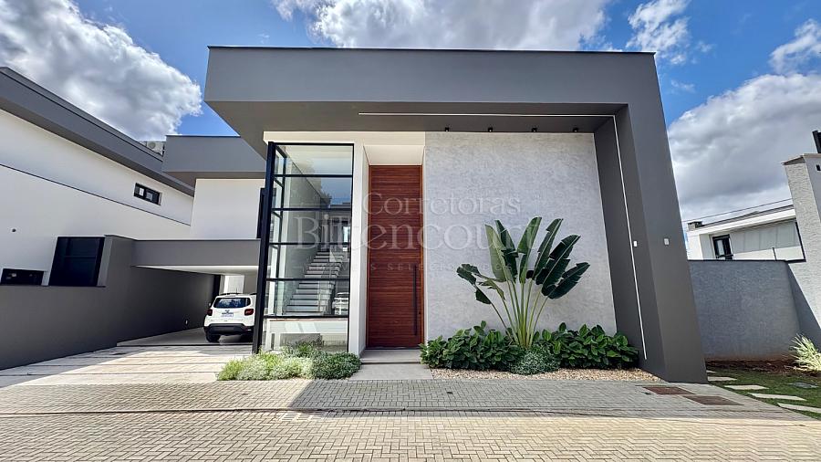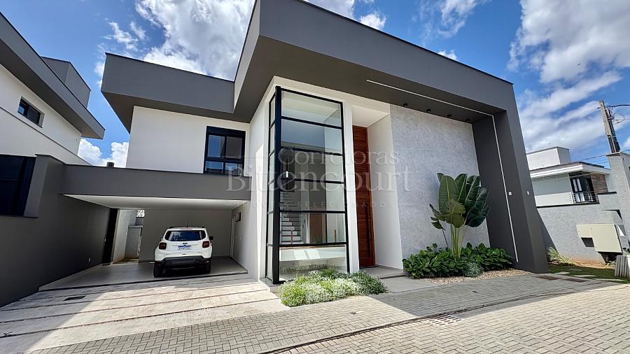 A residência possui 3 suítes, além de 2 vagas de garagem.