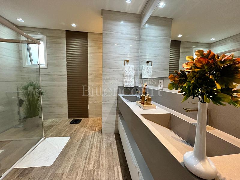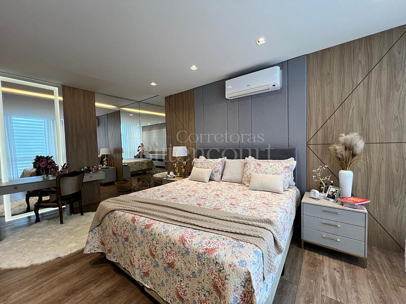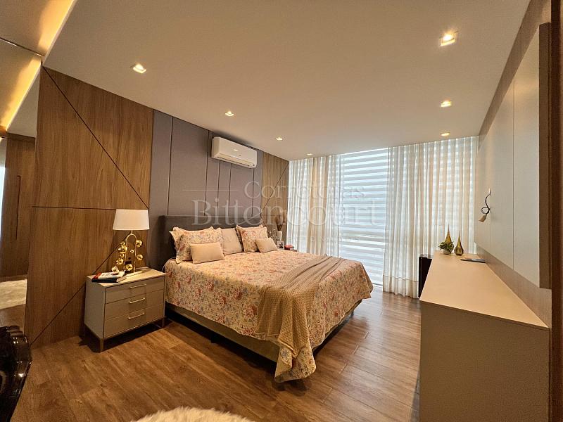 O piso superior conta com uma sala íntima, uma suíte master e duas demi suíte.