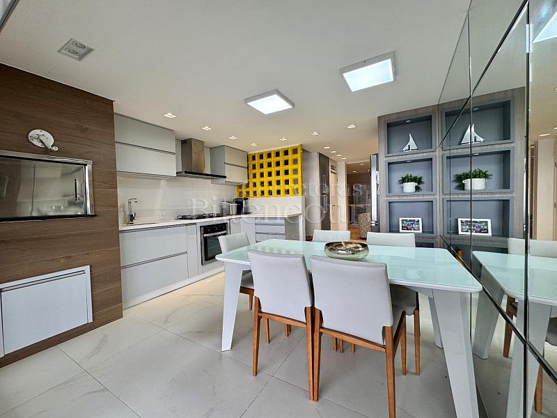 Tríplex 100% mobiliado com 3 suítes, lavabo, lavanderia, cozinha, varanda e 2 vagas de estacionamento.