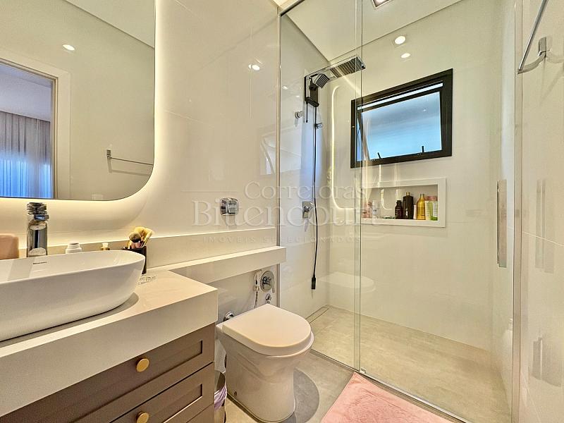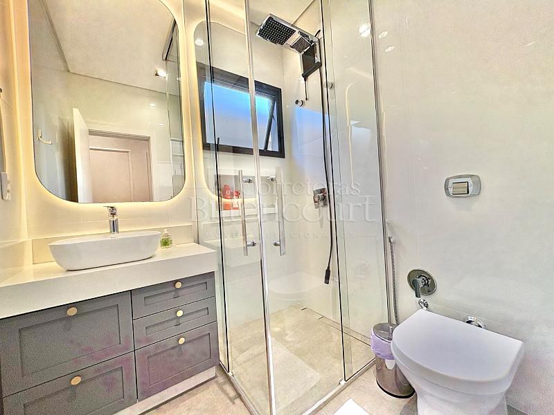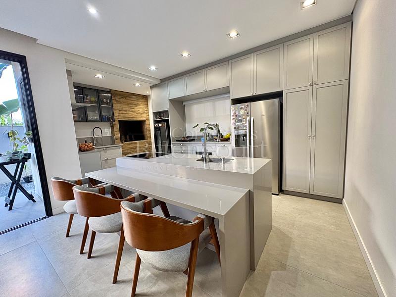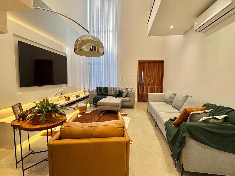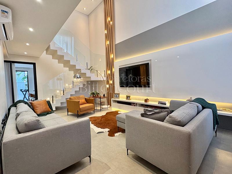 Esta residência é composta por 3 suítes, sendo uma com closet, living amplo com pé direito duplo na sala, cozinha com churrasqueira, banheiro na área externa, lavabo, lavanderia e 2 vagas de garagem para carros grandes.