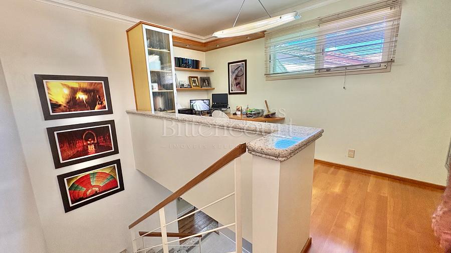 No piso superior, um escritório e uma suíte completa.