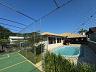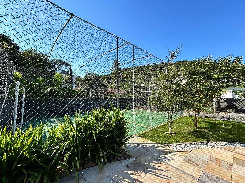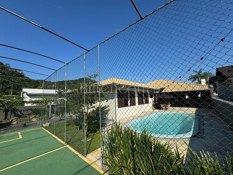 A área externa da casa é ainda mais encantadora, com um terreno amplo com piscina, quadra de esportes, pomar com árvores frutíferas e horta.