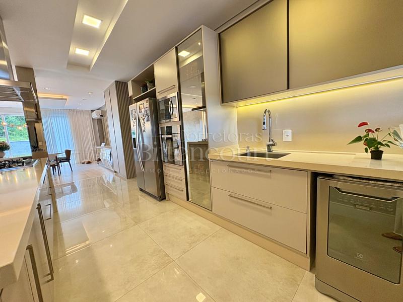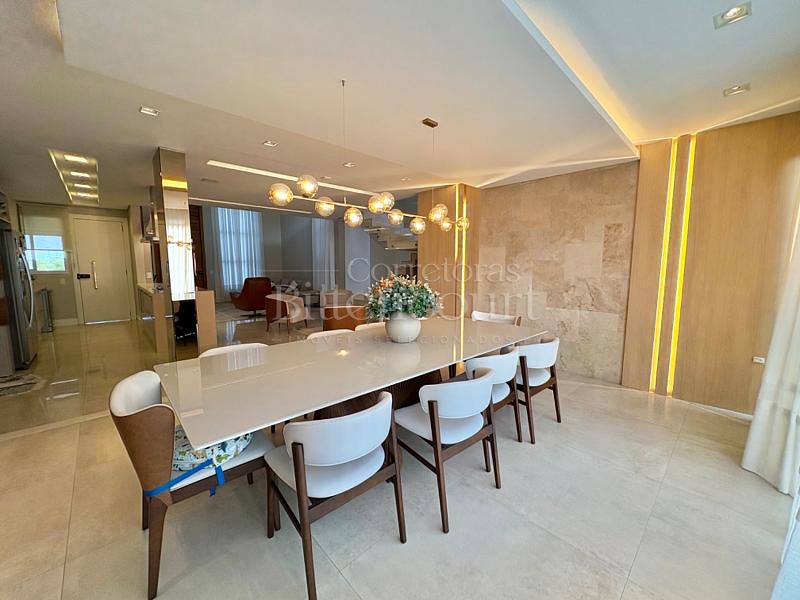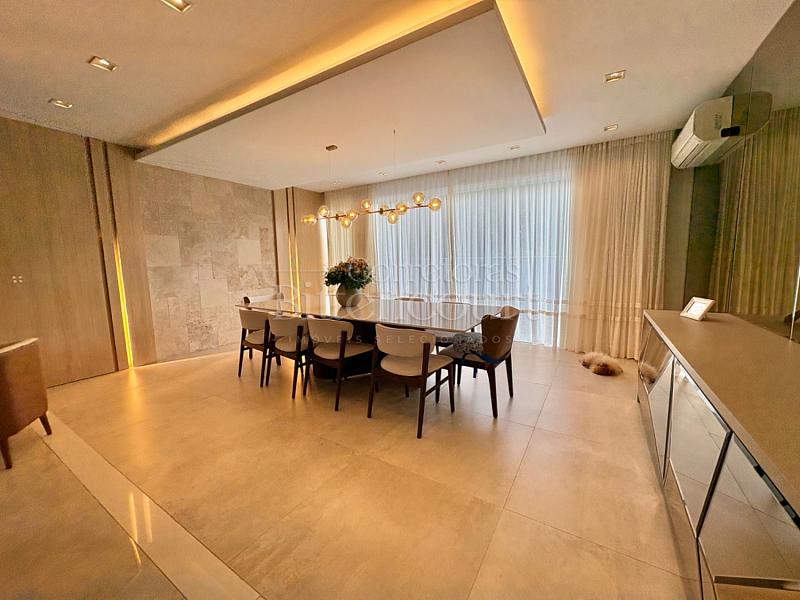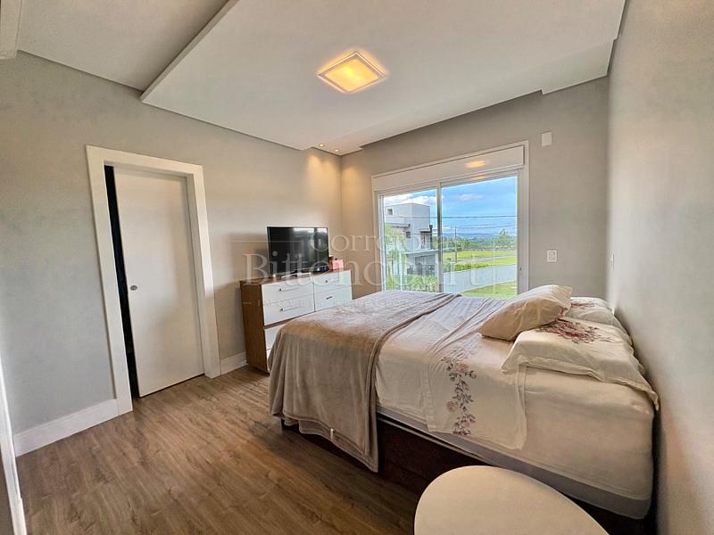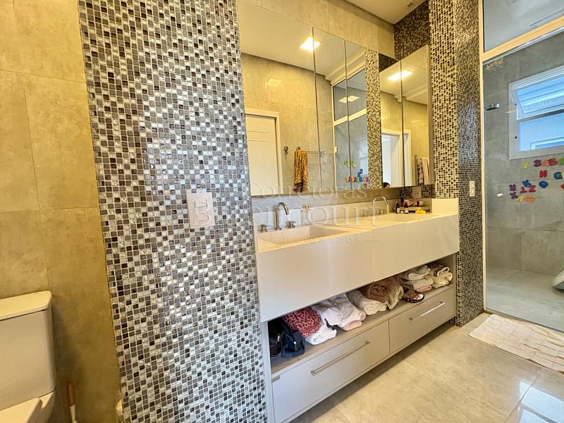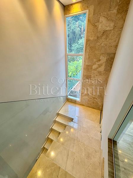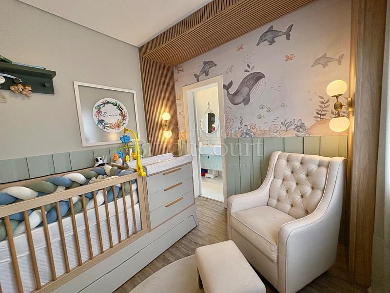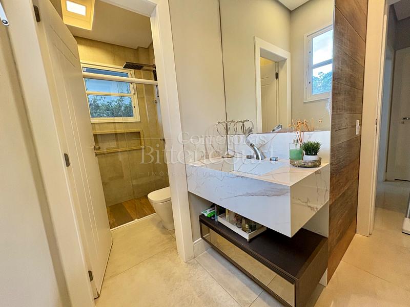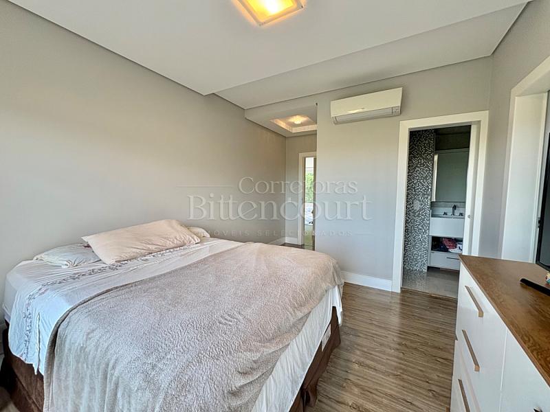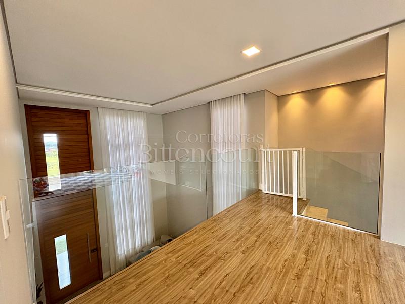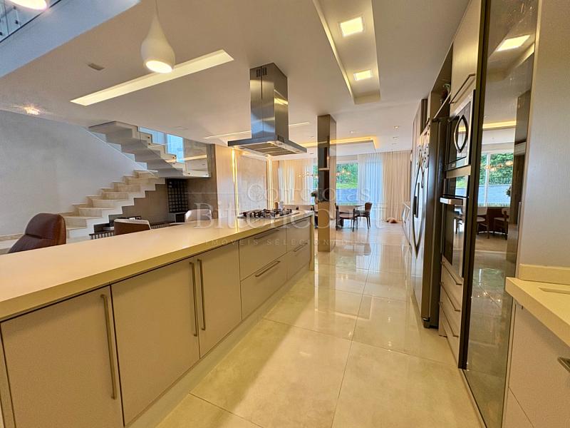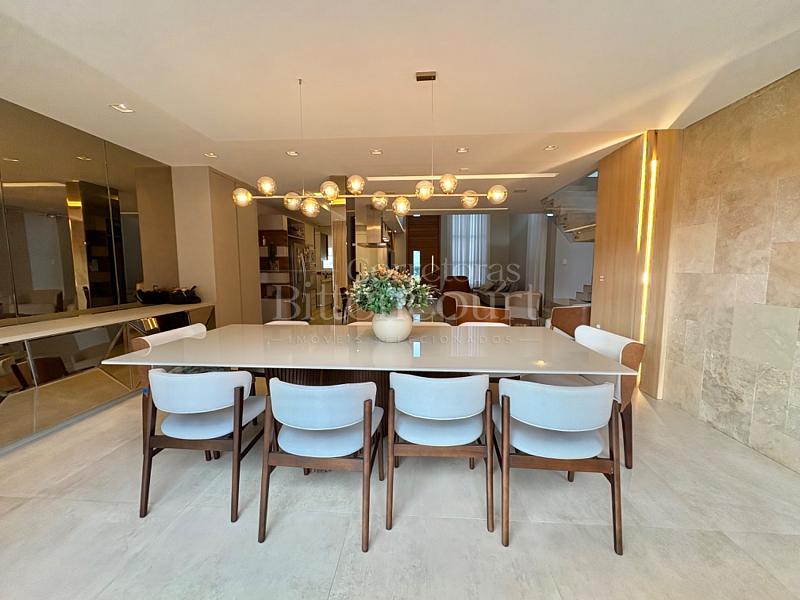 No piso superior são 3 suítes e um mezanino que está sendo utilizado como sala de brinquedos, porém pode ser personalizado para sala de tv ou escritório. Já no piso inferior amplo living, seno a sala com pé direito duplo, cozinha toda equipada, banheiro completo, lavanderia, escritório fechado e garagem para dois carros.