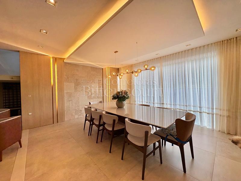 A casa permanece toda mobiliada com destaque para móveis da sala da marca Natuzzi.