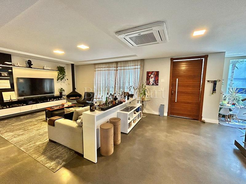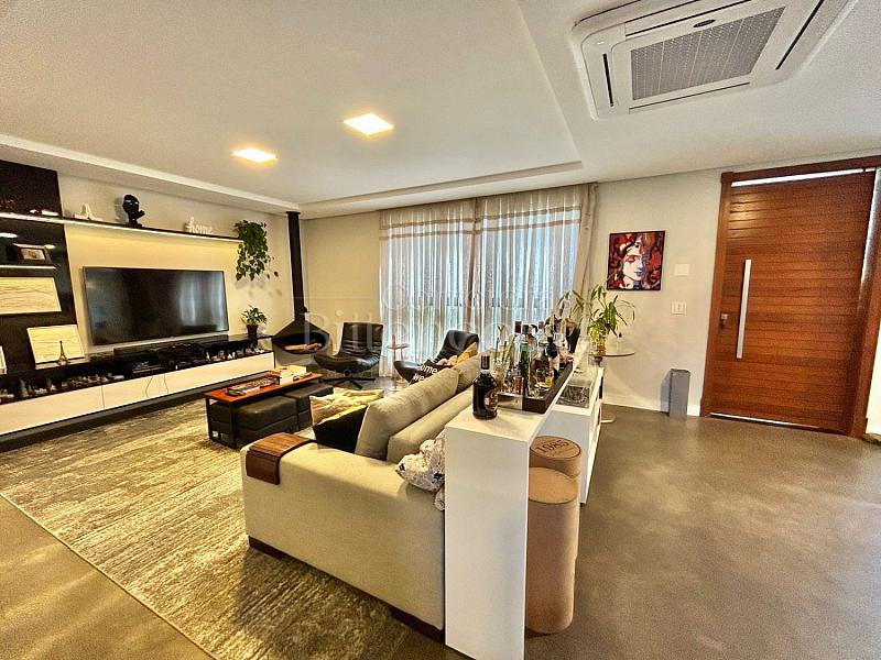 Acabamentos diferenciados como piso em cimento queimado, rebaixo de gesso, lareira e esquadrias linha gold.