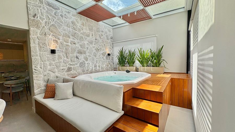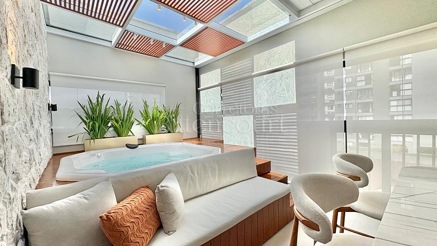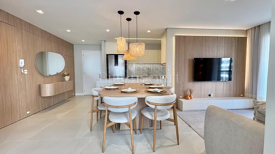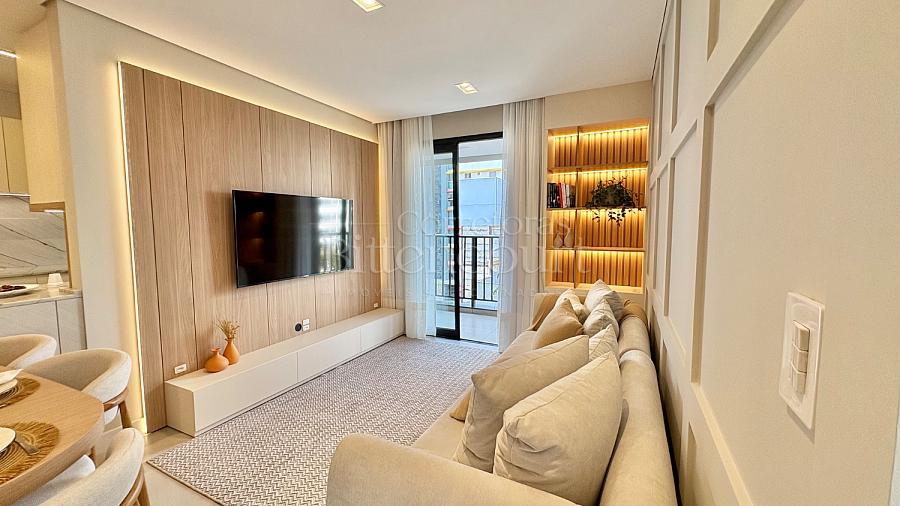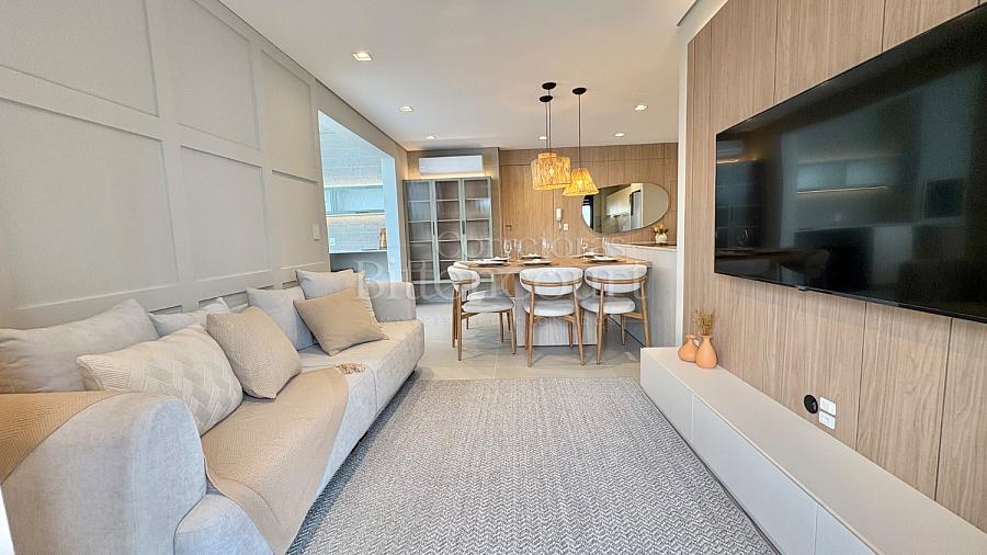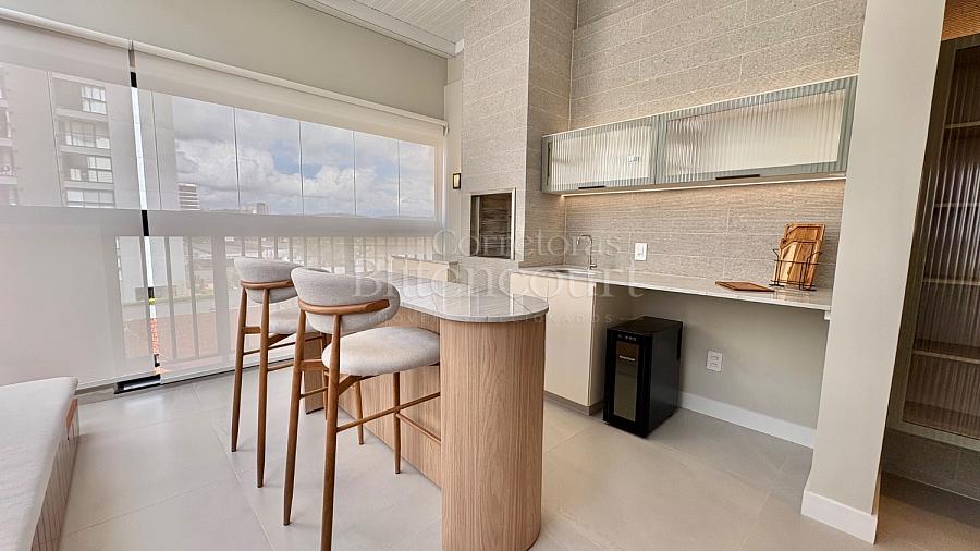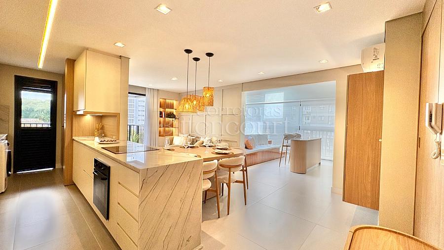 São 133m² de área privativa muito bem distribuídos, com uma área social ampla e aberta, conectada com área gourmet e spa. Além disso, possui uma suíte com grande espaço de closet, mais uma suíte com sacada e também um dormitório simples.