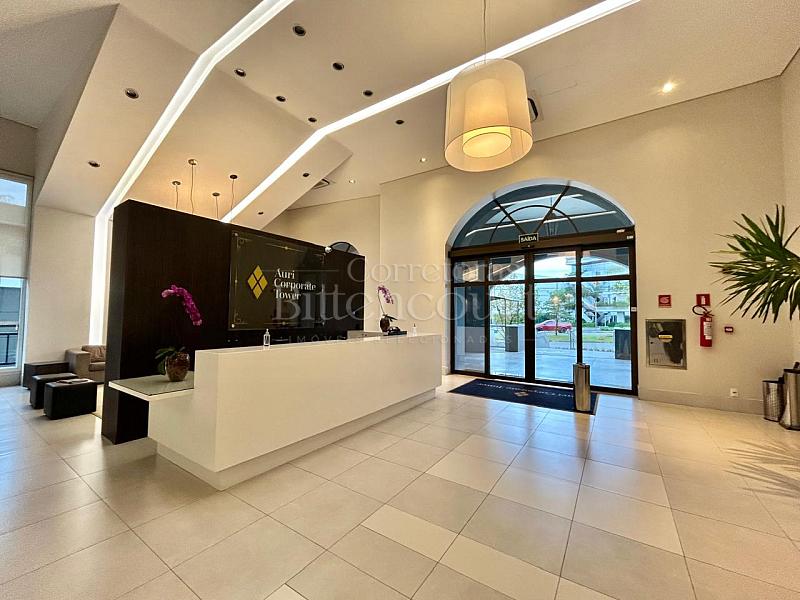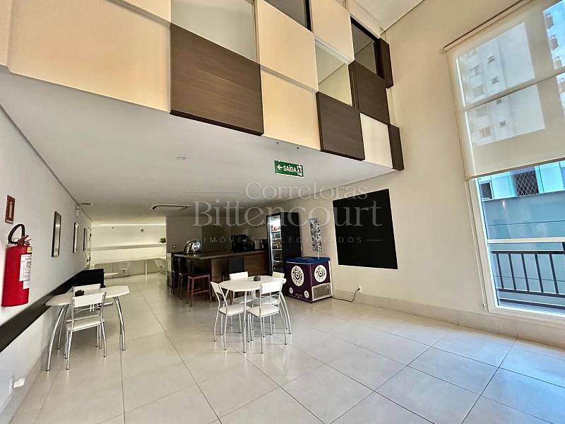 O prédio conta com portaria, cafeteria e sistema de estacionamento rotativo.
